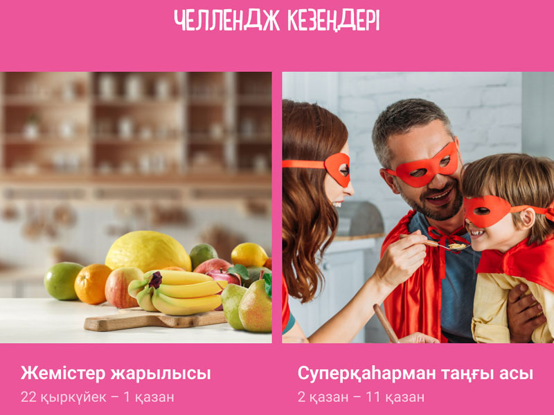 • «Жемісті жарылыс: тағамнан жасалған сурет» – ата-аналар мен балалар шығармашылық қабілеттерін көрсетіп, тағамнан сурет жасап, өз жұмыстарының фотосын челлендж сайтына жүктеуі керек;